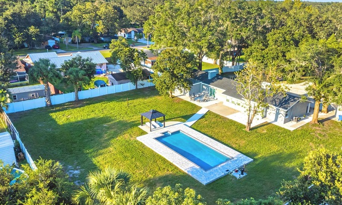 With its lush surroundings, ample amenities, and unique layout, this poolside villa is the ideal backdrop for your next big gathering. Book now and discover why so many guests fall in love with this tropical farmhouse retreat in Tampa Bay Area!