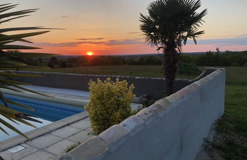 Large detached 4 bedroom renovated farmhouse with breathtaking panoramic views over Montignac-De-Lauzun & far beyond, set in 6 hectares amongst the plum orchards with huge enclosed in ground pool 12 Mtrs by 6 metres with pool house, wrap around terrace with undercover eating areas, located on an ancient quiet back road to Tombeboeuf on the very edge of Montignac De Lauzun with a local shop, post office, library & English pub within 1 mile with visiting weekly food trucks, conveniently located to explore the countryside and array of beautiful bastide villages Lauzun, Eymet, Villereal, Monpazier, Monflanquin, Casseneuil, Temple sur Lot, Castelmoron, Bergerac to name just a few, with their night markets & entertainment, shopping, golf, star gazing, paddle boarding, canoeing, The Dordogne & The Lot rivers within 20 minutes drive, the beautiful swimming lake at Lougratte is 15 minutes away or simply relax by the pool here in peace & tranquility, the views here are exceptional.