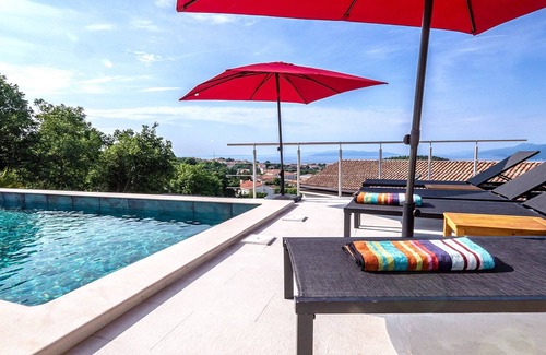 Exclusive vacation apartment near Opatija with 180° sea view and private pool is located in Kastav. Exclusive vacation apartment near Opatija with 180° sea view and private pool provides accommodation, featuring Sports/Activities, Air Conditioner, Parking, among other amenities. This Apartment features Sports/Activities, Air Conditioner, Parking, to make your stay a comfortable one.