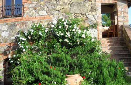 The country house “Pomantello” from the 17th Century is picturesquely situated on a hill and offers a unique panoramic view of the fields, the adjacent natural park Monte Rufeno and the medieval village of Torre Alfina.