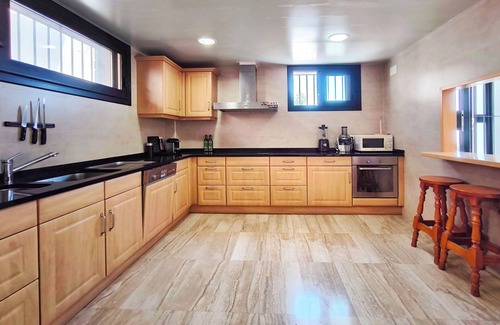 Our villa has 3 spacious and comfortable double bedrooms. Additionally, it has 3 full bathrooms, one of which is in the master suite with a jacuzzi, ideal for relaxing. We provide towels and bed linen for your convenience.