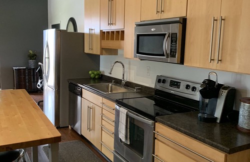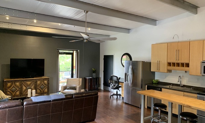 High-end executive industrial apartment with tall ceilings and over 800 sf. Located next to Admiral Cleaning (Rug Wash Guru) rug cleaning facility. Walking distance to the Huntsville Executive Airport in Meridianville, AL, Yulista and Sierra Nevada. Convenient to grocery stores, gas, and restaurants. It is only minutes to Huntsville, AL. Very quiet and private stay in a great central location.