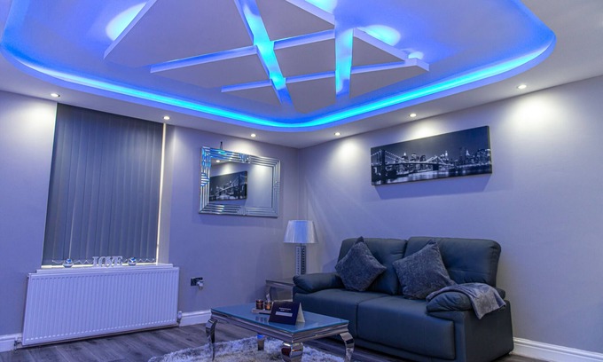 All our serviced apartments are extremely spacious, well lit and furnished to a very high standard with brand new contemporary furniture. The luxurious suite comprises of a beautiful tiled bathroom, a fully fitted high gloss kitchen with integrated appliances including: washing machine, hob, oven and fridge-freezer. Furthermore a spacious living area that benefits from outstanding LED mood lighting as well as 43 Inch Samsung smart LED TVs.