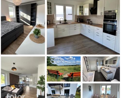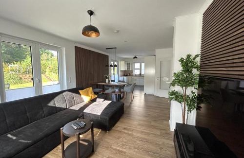 - Neue moderne große Wohnung am See mit Terrasse, Garten, Einbauküche, Badewanne, Dusche, nähe Berlin