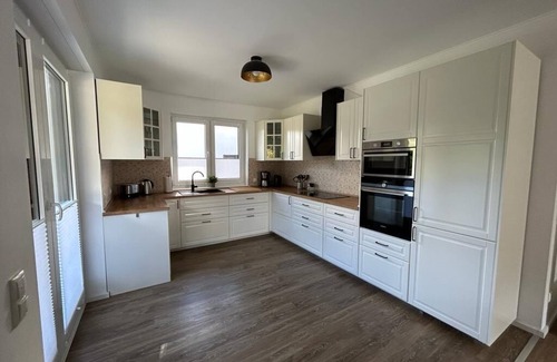 - Neue moderne große Wohnung am See mit Terrasse, Garten, Einbauküche, Badewanne, Dusche, nähe Berlin