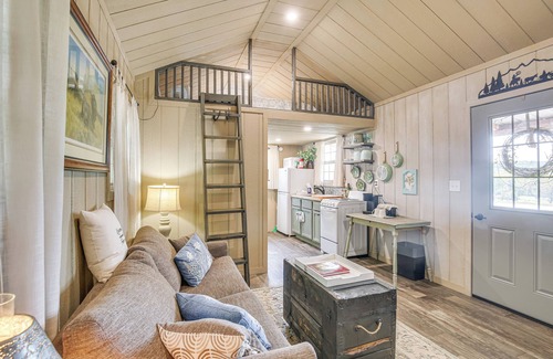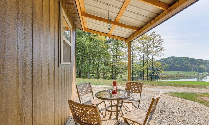 Feel like you're traveling abroad right here in the USA at 'The Cabin at Kamaroo Farms!' Authentically unique, this 1-bedroom + lofts, 1-bath vacation rental offers a true escape in the Kampsville countryside. Upon arrival, your chariot awaits — aka a private ATV ride. But the fun won't stop there — tour the grounds, dig for treasures, and prepare to fall in love with the resident exotic and farm animals!