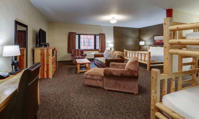 Welcome to our lodge-style hotel, blending rustic charm with modern comfort across 161 unique rooms. Enjoy amenities like our heated indoor/outdoor pool, fitness center, and complimentary hot breakfast. Relax at Palmer’s Pub for a local brew. Your memorable stay in the heart of the action awaits.