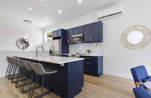 Channel your inner chef in the kitchen complete with stainless steel appliances, an oversized island with bar seating, and all the cookware you need, this kitchen is a dream for preparing meals with friends and family.