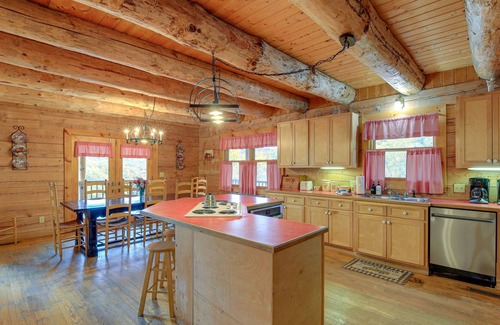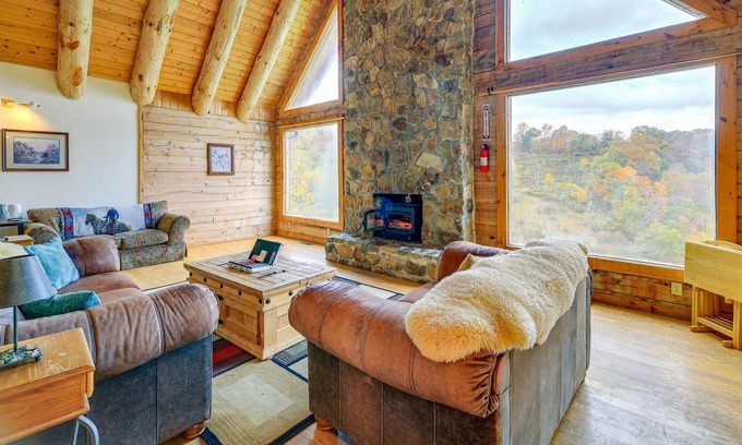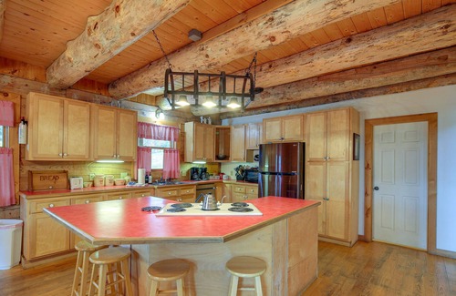 A breathtaking mountain escape awaits at this Ceres, VA, vacation rental! Nestled on a 120-acre property, this 6-bedroom, 4-bath cabin offers plenty of privacy and room to enjoy the great outdoors. Stay on-site and you can feed the horses, hike the trails, and take in the stunning views from the wraparound deck. Venture out and you can easily take a short drive to hotspots, like the Appalachian Trail and Hungry Mother State Park. Afterward, enjoy cozy evenings spent by the wood-burning stoves!