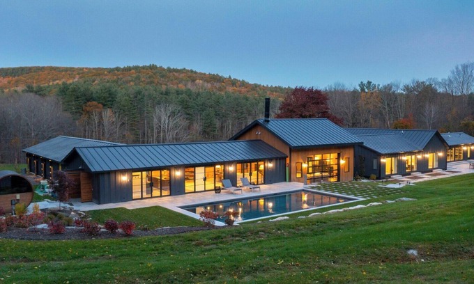 Expansive Rustic and Modern Berkshires Estate on 66 Acres, Mountain Views, Pool, Sauna, Perfect for Families