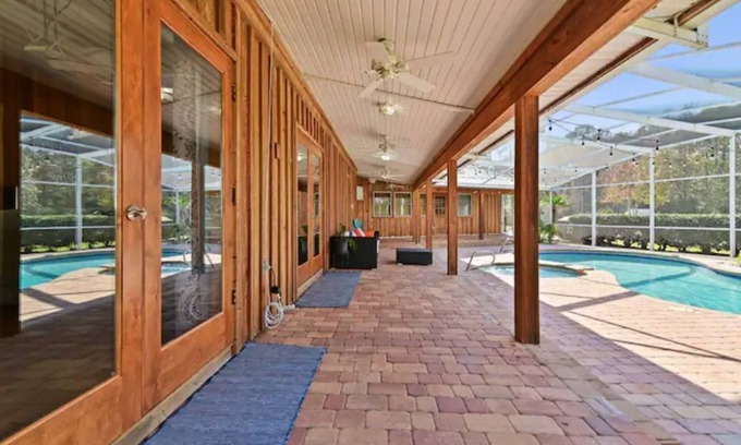 Variety! Atlantic beaches and Space Coast less than an hour to the East and the gator and amusement parks less than an hour to the West. Come home from your adventures to a spacious and uncluttered nature retreat that boasts of cypress wood walls and vaulted ceilings. You can take a dip in the pool and transform the family room into a theater with super comfy couches that totally recline. So relaxing!