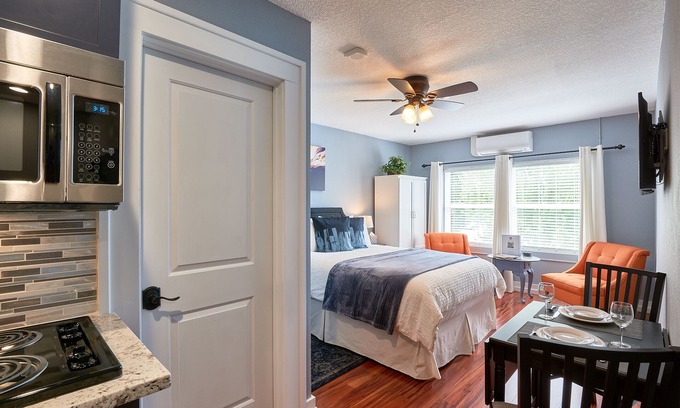 A quick note about the building: this is a beautiful, historic property, and with that charm comes a little quirk — there is a steep flight of stairs you’ll need to climb to reach your unit, and there is no elevator in the building. We recommend bringing in luggage carefully and taking your time on the stairs.