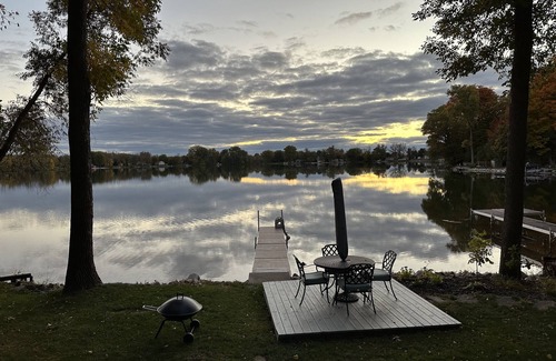 Elegantly furnished bedrooms with plush bedding provide a peaceful retreat after exploring the lake and surrounding areas. In the evenings, relax on the deck for breathtaking sunsets or gather around the fire pit. The private dock offers easy access to the lake for fishing, swimming, or enjoying the peaceful surroundings.