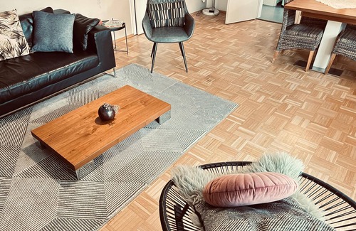 The spacious, light-flooded apartment with real wood parquet, the ideal floor plan with 2 full, cozy bedrooms, new bathroom, large modern living / dining room and the fully equipped kitchen offers the comfort of a cozy private apartment.