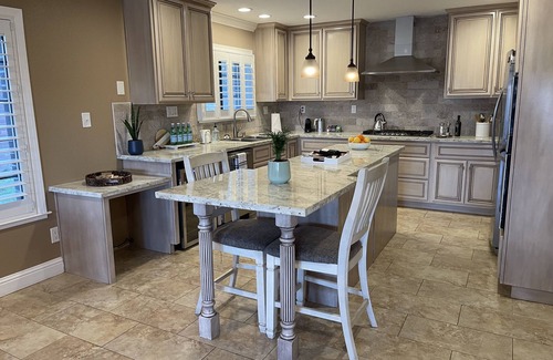You will have peace of mind as this your own private home with private gated driveway and parking. The house features large modern style guest house with 1,500 sq. ft. The spacious living area is tastefully decorated and equipped with modern amenities, and is turn key with all items needed for a comfortable stay. Upstairs unit in duplex. Completely independent with separate entrance and all amenities (nothing shared).
