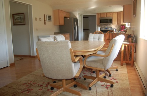 Our house is comfortably equipped with all the items needed to relax and enjoy the peacefulness of the area. There are two bedrooms upstairs, with a king size bed in the master bedroom, and a queen in the second bedroom, as well as a master bath with a shower and a full bathroom across the hall of the second bedroom. Downstairs there are two additional bedrooms, along with a bathroom with shower. The living area downstairs has a new propane stove, loveseat, Roku TV, and extra dining table. A perfect place for kids to hang out and play games. The comfortable upstairs living room has a 50-inch flat screen Roku television and a DVD player. The dining room has a large table with seating for 6. A fully equipped kitchen with complimentary hot beverages for the Keurig. At the end of the day you can relax, read, play board games, do puzzles or if you want to check in with civilization Wi-Fi is available. A washer and dryer are also available for your use.