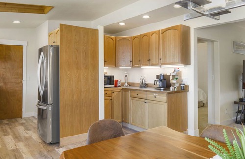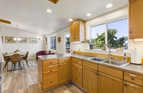 This spacious, newly renovated, mid-century modern home offers breathtaking views of the Dungeness Lighthouse, the Spit, and shipping lanes, and is ideally situated in the sunbelt region of the Olympic Peninsula, which receives less than half of the rainfall than Puget Sound does. This immaculate 1,200 sq. ft. home boasts a fantastic modern, open-concept design that will delight families and groups of friends alike and, with two bedrooms and a full size sofa, can sleep up to 6. Perched on a high bank above the Dungeness Estuary and wildlife reserve, it is located in a quiet residential neighborhood just 7 minutes from downtown Sequim and 20 minutes to the Olympic National Park. The natural beauty and sweeping views are sure to impress.