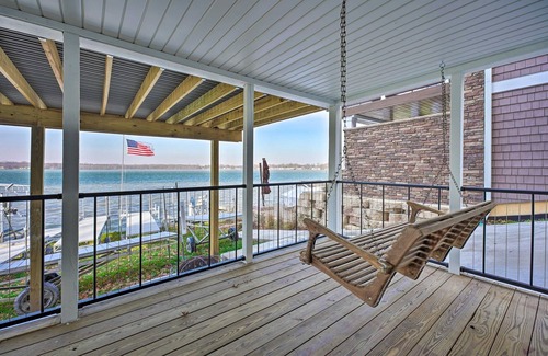 - Private on-site dock, concrete stamped patio, 2 decks, firepit, spacious yard.