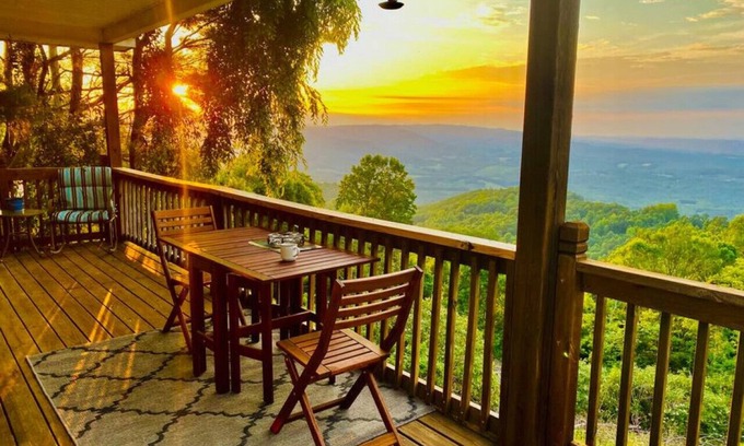 Feel like you're on top of the world! Nestled in a secluded mountain landscape, Cloud 9 offers panoramic views that stretch all the way into North Carolina. Behold the majestic Pilot Mountain to your right and a sprawling, verdant valley flanked by towering peaks to your left. It's not just a view; it's a visual feast for your soul!