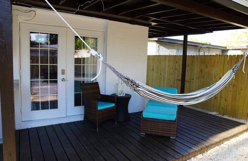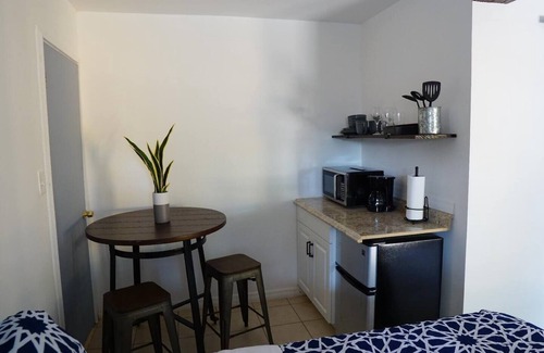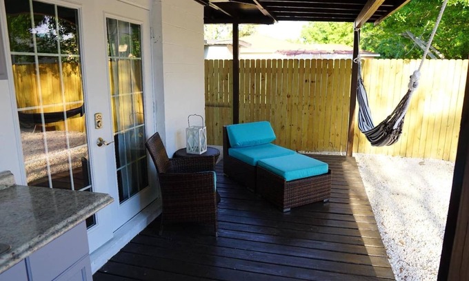 Recently remodeled with modern cozy touches. Completely independent Studio with private entrance to come and go as you please. Free private parking in driveway. Equipped with fridge, microwave, and coffee maker. smart TV! Our studio is within a centrally located residential neighborhood in the heart of tampa. An Uber ride away from all tourist attractions, famous restaurants and nightlife is just a couple blocks away. Safe to come and go at all hours. A 5 minute drive to the Airport, upscale shops of international Mall and most famous Restaurants in Tampa like Ocean Prime. Saint Pete Beach is a 20 minutes drive away! (Please let us know if you are heading to the beach we can lend you beach chairs and umbrella). 20 min away from Bush gardens. 10 min away downtown Tampa.