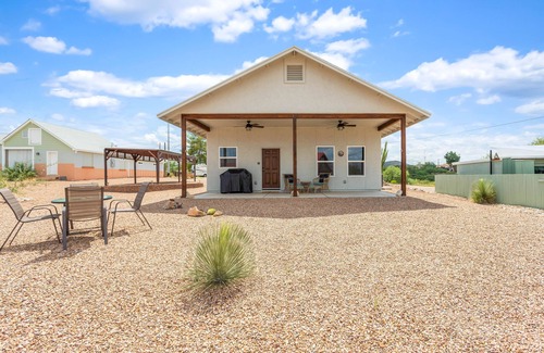 This home is located in the heart of the famous gun slinging town of Tombstone, AZ ! Just minutes from the hub of the town Allen Street !! This two bedroom one bath rental is perfect for 4 people to stay comfortably. The main bedroom features a king size bed, two dressers and ceiling fan and smart tv with Wifi for you to stream your favorites. The second bedroom features a nice queen bed, a dresser, ceiling fan and smart tv with Wifi. This home has central AC and heat for your comfort and you will be able to adjust to your comfort level. Each bedroom has a lamp with USB plugs for charging your devices .The bathroom is state of the art with a nice size stand up shower and beautiful mirror with nice lighting. The kitchen has a table to seat up to 6, the electric stove and microwave is easily accessible for your cooking needs. There is all the essentials to cook your meals with. The laundry closet is located adjacent to kitchen with a stackable washer and dryer. The living room features a love seat that reclines and a recliner, a Bluetooth speaker end table with a USB charging port and wireless charging top. A 42 inch smart tv !! There is a patio to the back of the house right off the kitchen with a sitting area on the patio and one in the back yard. Two fans over head for nice lighting and breeze on a hot summer evening. A gas grill to be used is also on the back patio. The side of the house has a car port for parking with plenty of extra parking. Not only is this house awesome but there is space to park your rv and even the hookups are right there have a big family bring them along set them up in your RV and enjoy the amenities of this fabulous home. Now booking !
