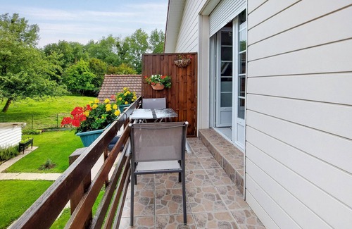 Enjoy a holiday for two in this charming holiday apartment in Wirwignes, right next to the friendly owner's house. A stylish living room with exposed wooden beams and comfortable furniture awaits you in your holiday apartment. Relax with a good book or watch a film. The apartment is ideally suited to the needs of a couple, so you can enjoy your stay to the full. Start your day on the cosy balcony with a view of the lovingly designed garden. The garden not only invites you to linger, but also offers the opportunity to relax in the sun or enjoy the fresh air with a glass of wine. Use your kitchen to prepare breakfast together before setting off to explore the surrounding area.