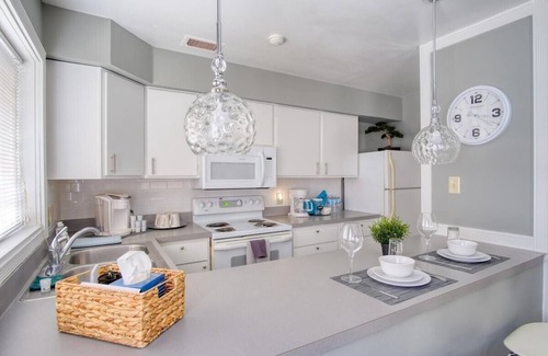 Welcome to your ideal retreat, featuring super spacious rooms designed for ultimate comfort and relaxation. The apartment boasts a brand-new, incredibly comfortable queen-sized bed with high-end linens, ensuring a restful night's sleep. The eat-in kitchen is equipped with modern appliances, perfect for preparing intimate meals at home. After a day of exploration, unwind on the large, comfy couch in the living room, or enjoy your favorite shows on the HDTV.