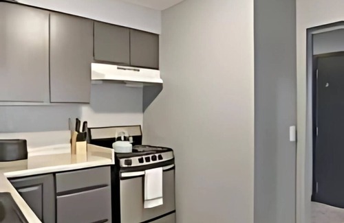 Experience the ease and comfort of our chic studio apartment in the heart of Chicago. Sink into our inviting couch while watching TV, and rest well on our cozy queen-sized bed with ample storage space for your belongings. The apartment also includes a dedicated workspace for taking care of any emails.