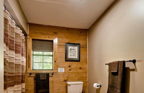 The main entrance located upstairs welcomes you to a living area with comfortable leather couches, a large screen TV equipped with DirecTV, and a lovely sun room with seating to view the panoramic views of the gorgeous Buffalo River valley and your own private natural spring flowing into a pond. It is not uncommon for neighboring horses to wander around the property and an occasional Elk visit. The master suite is located on this floor and has a King bed, a twin bed, and a private bathroom with a bath tub/shower. The cozy dining room seats 6 and is adjacent to the kitchen which has everything you need to cook a gourmet meal including a refrigerator with ice maker/filtered water, stove/oven and dishwasher. Relax on the spacious and rustic wrap around deck complete with rocking chairs, dining area, and gas grill. Gather around the fire-pit with your loved ones and stay cozy or soak in the hot-tub and gaze at the stars.