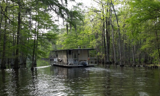 Welcome to your new home away from home, where getting away from it all doesn’t mean giving it all up. Come stay on the Swamp Tuna and get back to nature. The Swamp Tuna uses conventional propulsion so even a beginner can get around with ease. (yep... YOU CAN DRIVE IT AROUND!!) This area is teaming with wildlife. Experience a calm peaceful atmosphere in the best South Louisiana has to offer. Create your own adventure or stay in soaking up the silence. Our unique house boat is solar powered for efficiency which means there are no noisy generators on board. It sleeps four (1-full size bed, 1- set of bunk beds). Some amenities include: a full-size bathroom with a full-size tub and shower, a three burner gas interior cook top, a 5.8 cu. ft. chest refrigerator, dining table seats four, deck burner for outdoor cooking, two kayaks and two deck rockers to name a few. FUEL INCLUDED! Ask about 4dy SPEACIAL!