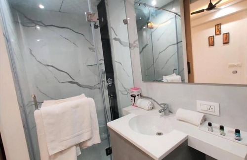 Your Jaipur adventure begins at this fabulous 7-bedroom apartment. Each room features a luxurious king bed, ensuring a fantastic night's sleep for all guests. With amenities like a fitness room, WiFi, and AC, your stay will be nothing short of brilliant. The 7 bathrooms are equipped with refreshing showers, adding convenience to your stay. Enjoy all that Jaipur has to offer when you stay at our place.