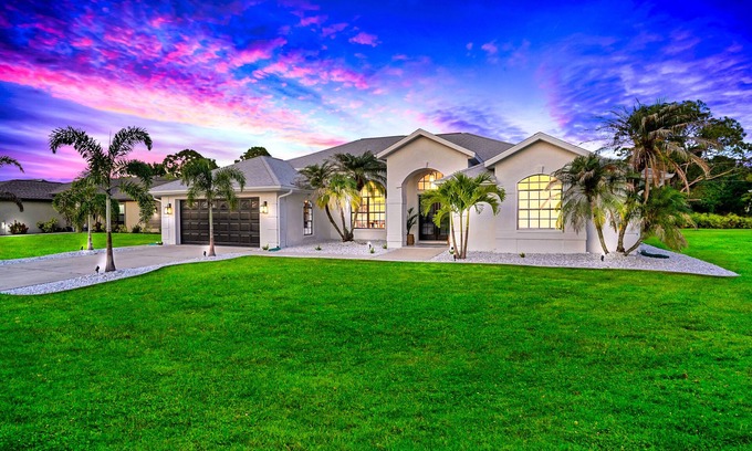 A warm welcome to your vacation home in beautiful Port Charlotte, FL. Full of sunshine, and glitz this spacious 4 bedroom/3B pool villa, is ideal for families, couples and friends. Everything has been provided for a luxury vacation or family reunion experience. Head outside for the best in outdoor living. Enjoy a beautiful view of large pool and spacious kitchen. A short distance from stunning beaches of Boca Grande, Port Charlotte, Manasota beach and Fort Myers. Shopping and Dining in Downtown Port Charlotte.