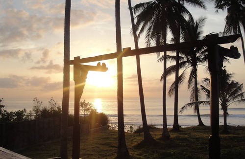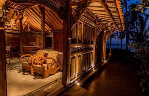 This meticulously restored Javanese joglo, Villa Amrita, sits on a 100 are (approx 2 acre) south facing ocean front estate in East Bali, and is the idyllic place to immerse yourself in authentic Balinese village life while enjoying 21st century amenities. Located near Amlapura in Karangasem province, the grounds are populated with majestic coconut palms, tropical fruit trees and organic vegetable garden, all within walking distance of an insider's favorite surf spot. The property is minutes from local attractions like Tirtagganga and Taman Ujung water palaces, white sand beach (ours is black sand), traditional marketplaces and artisan workshops. Hiking to volcanoes, biking through sacred valleys and rice fields, snorkeling, scuba, fishing excursions, and trips to ancient villages are all within close reach. Villa Amrita is fully furnished, blending antiques with modern conveniences, including hi speed internet, land line, excellent cell reception, cable TV and Bose sound system. On-site staff can provide western and Balinese meals and guided transportation, and will happily share insights into Balinese culture with guests upon request. Just a two hour drive from Ngurah Rai international airport, but far from the tourist traps and annoying traffic. Paradise still exists in our corner of the island!