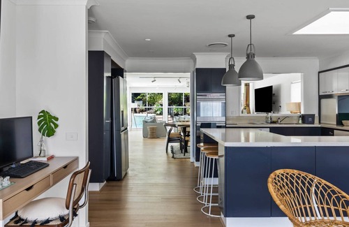 Inside, this home is styled to perfection, with modern and chic decor throughout. The open-plan living spaces include a spacious dining and lounge area overlooking the crystal clear pool.