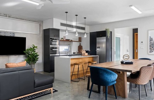 As you step inside, you'll be greeted by the industrial-inspired design with polished concrete floors in the living areas, creating a modern and sophisticated ambiance. Soft luxurious carpet adorns the bedrooms, ensuring a comfortable and indulgent stay.