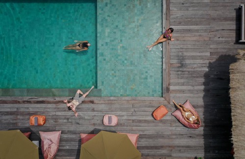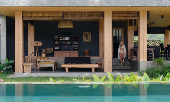 The other three bedrooms showcase stunning rice-field and jungle views, creating a peaceful retreat surrounded by nature.
