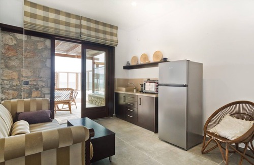 Apartment Zeta offers a luxurious two-bedroom, two-bathroom villa that seamlessly blends supreme comfort with elegance, style, and authentic Greek hospitality. Located just steps from the enchanting Michaliou Kipos beach, this villa combines traditional Dodecanese architecture with contemporary design and is powered entirely by sustainable energy sources such as solar.
