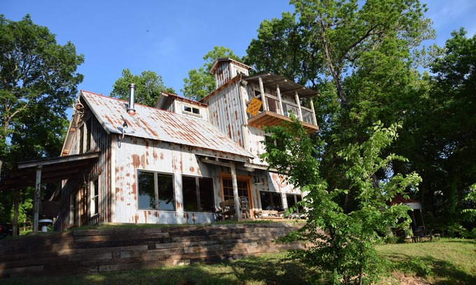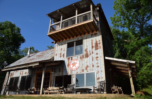 A uniquely uncommon 3 story custom built home in Southern Oklahoma on the Red River. Welcomed with a rustic industrial feel perfect family atmosphere. The river provides unlimited activities including swimming, fishing, kayaking, volleyball, grilling out and much more. The 1500 sq ft home has a Master Bedroom downstairs with king size bed and a full bath. Additional bedrooms include a queen and full bath on 2nd level then a full and 2- twins on third level we call the bunk room. Our cabin accommodates a total of 8 people in beds 2 of those being couples style. There's a 1/2 bath off kitchen with laundry facilities. Very large kitchen with a beautiful view of the river flowing by. Our large concrete outdoor area is great for grilling or hanging out. Even after dusk you can flip on the string lights and continue the party. We can provided information for guided fishing trips or Air-Boat rides upon request as well.