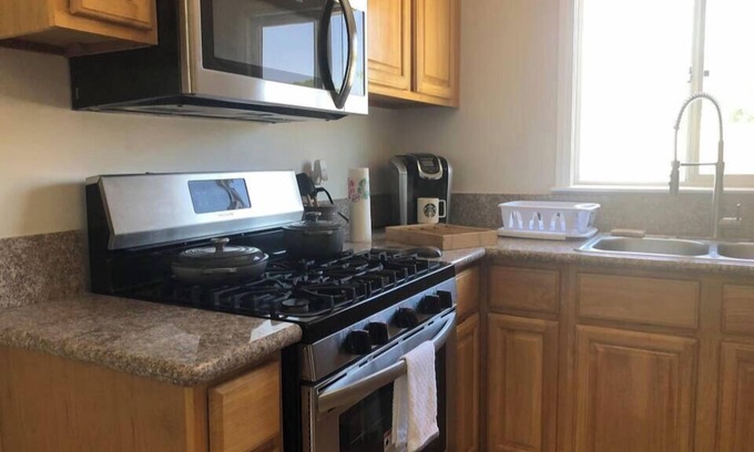 Live like a local in our cozy studio bungalow in Burbank, perfect for an extended stay. Our private unit offers all the comforts of home, including a fully equipped kitchen and comfortable living area. Enjoy the convenience of nearby amenities, such as groceries, a gym, and restaurants, all within walking distance. Experience the best of Burbank and the surrounding area during your extended stay.