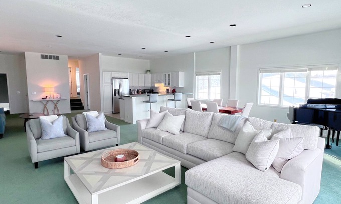 Almost 3000Sq ft Open loft style 2 bedroom condo overlooking the bay with large balcony just a couple minutes away from downtown Petoskey. Perfect space for a large family gathering to a romantic get-away retreat. Plus the space can accommodate more than 6 people should you need extra sleeping cots. This space is seen on multiple platforms and we are ready to provide you with a large and cozy space to call yours.