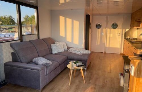 Führerscheinfreies mobiles Hausboot offers accommodations in Rechlin, 25 miles from Fleesensee and 6.8 miles from Mirow Castle. This boat is 22 miles from Buergersaal Waren. Free Wifi is available throughout the property and Landestheater Mecklenburg is 22 miles away. Offering a terrace and lake views, the boat includes 2 bedrooms, a living room, satellite TV, an equipped kitchen, and 1 bathroom with a shower. Guests can take in the views of the river from the patio, which also has outdoor furniture. For added privacy, the accommodation features a private entrance. Guests at the boat will be able to enjoy activities in and around Rechlin, like cycling and hiking. Rostock-Laage Airport is 57 miles away.
