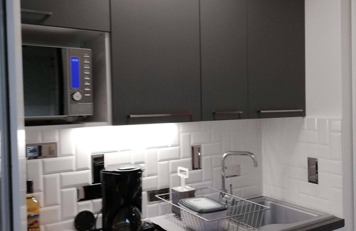 Kitchen equipped with electric hob, oven / microwave, fridge, electric griddle, etc. ...