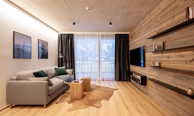 This stylishly furnished holiday loft in Bad Mitterndorf is ideal for a wonderful holiday for two. In addition to a queen-size bed in the bedroom, there is a double sofa bed in the living area, providing space for up to 4 people. A fully equipped open kitchen invites you to cook and linger. In this attractive living area of 54 m², coziness meets extraordinary design: traditional wooden surfaces and warm colors are joined by modern elements and furniture. The choice of materials and the fact that pets are not allowed make this place particularly allergy-friendly. Even the fully equipped open kitchen leaves nothing to be desired.The balcony and floor-to-ceiling windows facing south offer a fantastic view of the mountain panorama, especially of the mighty Grimming. Your accommodation is a great starting point for hikes, sports activities and outdoor recreation. Cross-country trails accessible directly outside the front door are enticing in the winter. Only a few meters away there is a bus stop – important for excursions and winter sports. The train station Bad Mitterndorf as well as shops and restaurants like the "Gourmet-Atelier Steirerhütte" are within walking distance. In the surrounding area, many beautiful excursion destinations, such as the Ödensee or the Tauplitz-Alm, are also waiting to be explored. Does golf hold a special place in your heart? The "Golf & Country Club Schloss Pichlarn" is only about 15 km away.Completed in December 2021 and furnished to a high standard, the accommodation is equipped with an elevator. Free internet access is provided during your stay. In addition, parking spaces are available directly on the property lot free of charge.