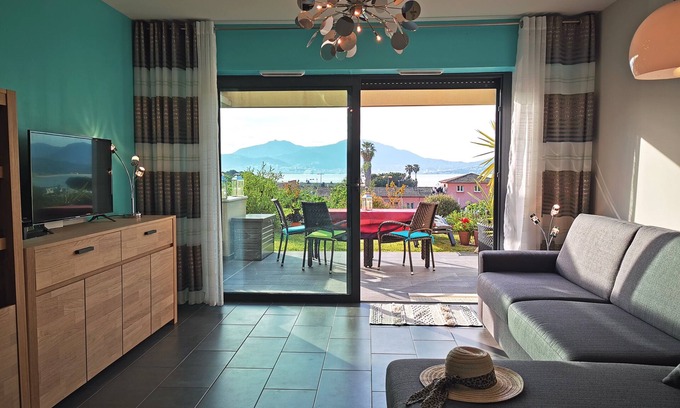 Ideally located in the heart of Porticcio, 450m from the beautiful beach of La Viva and the pier of the shuttle boat to Ajaccio. All amenities (Carrefour Market, bakery, butcher, fishmonger, scoop, shops, car rental ...), entertainment (night market, restaurants, bars and nightclubs) and activities (nautical center, jet-ski, departures excursions to Bonifacio and the creeks of Piana, ...) can be done on foot, even for children, no need for a car!