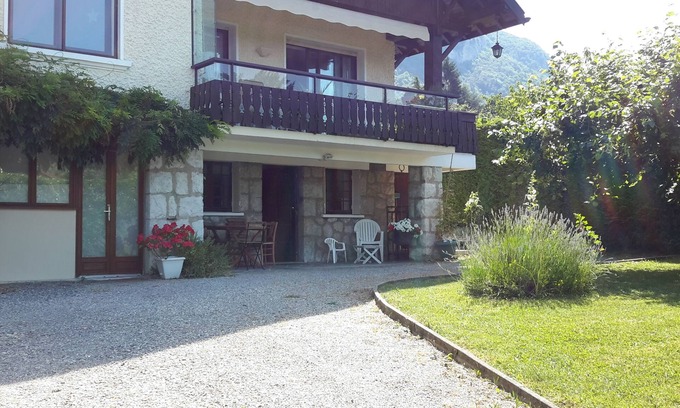 I rent a F3 on the ground floor of a villa ideally located on the sunniest shore of the lake, 30 meters from the port and the beach, 10 minutes from the center of the village and its shops, 5km from Annecy and 45 minutes from Geneva. The house is comfortable and enjoyable. it is composed of two rooms with beds 2 places in the machine being supplied. a large living room with a TV sitting area SFR box, Wifi, a kitchen with a hob, a fan oven, a fridge with freezer washing machines and clothes tableware, d, a microwave oven, a bathroom with shower and toilet and towel. The accommodation opens onto a garden and equipped for a comfortable holiday. A parking space in the yard is available. The tourist taxes are not included in the tariff which varies according to the period, 3 nights or the week, and the season in July and August the minimum duration is one week. .Thank you for contacting me for more information. Feel free to ask more photos I am available. (For the winter contact me)