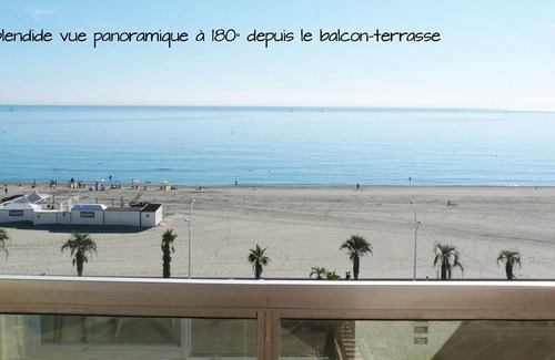F3 standing on the beach, parking, super panoramic 180 ° view, Top position | Apartment in Canet-en-Roussillon
