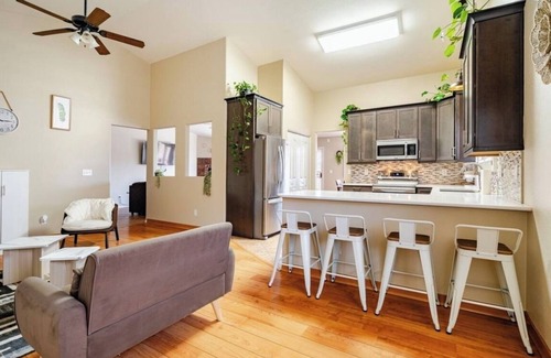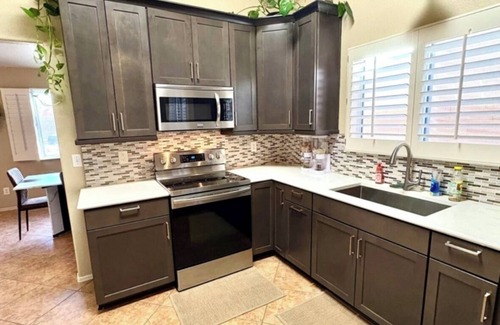 Get ready to relax in this delightful 4-bedroom house in Tucson. With 1 king bed and 3 queen beds, this gorgeous property offers a cozy retreat for guests. Enjoy the convenience of amenities like AC, a hair dryer, and an iron. The 2 bathrooms feature a bathtub and a hair dryer for added comfort. Our place will help you feel at home while you're traveling in Tucson. Enjoy the back yard with your own private grill and pool great for get together’s and making many memories!