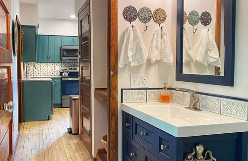 •There is a bathroom with shower located on the first floor off the kitchen and body wash is provided along with wash clothes and towels.
