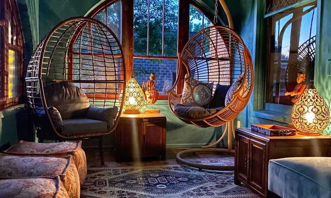 •The front porch has plenty of creative seating to hang out and chill.