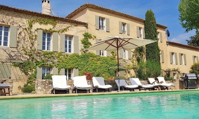 As featured in The Times newspaper in the UK - July 2024. Fantastic and spacious, very well equipped, luxurious and comfortable 18 century property with 7 bedrooms and 6 bathrooms, plus ground floor WC and poolhouse shower room. Walled and enclosed garden with heated swimming pool, surrounded by fields. Very private, no neighbours. Very child-friendly - and dog friendly by permission only. Only 20 minutes from the Luberon and 25 minutes from Aix en Provence. A perfect location being so close to many cultural and historical places of interest.